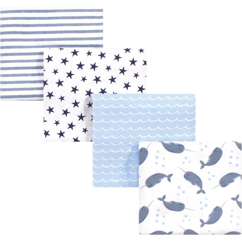 Hudson Baby Unisex Baby Cotton Flannel Receiving Blankets, Eucalyptus, One Size(Narwhal One Size)