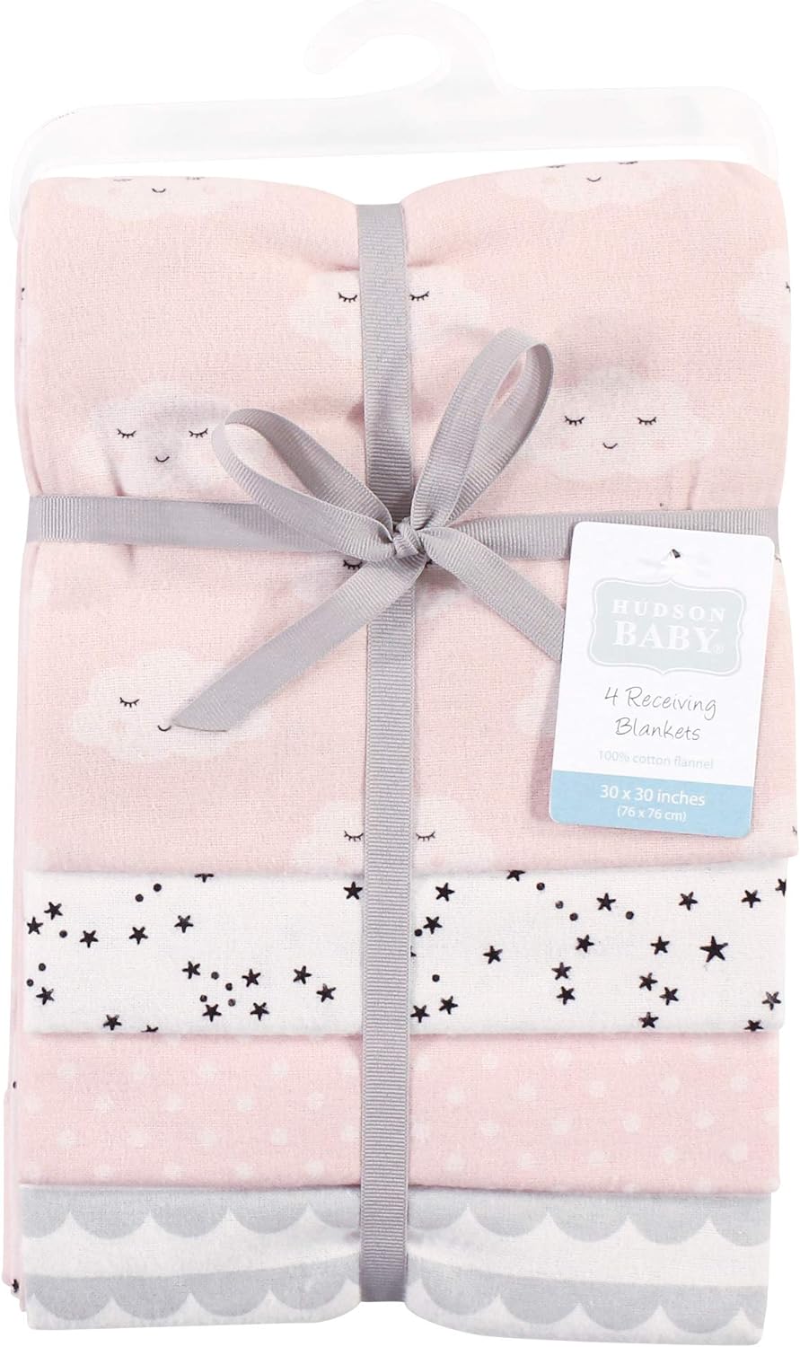 Hudson Baby Unisex Baby Cotton Flannel Receiving Blankets, Eucalyptus, One Size(Pink Clouds One Size)