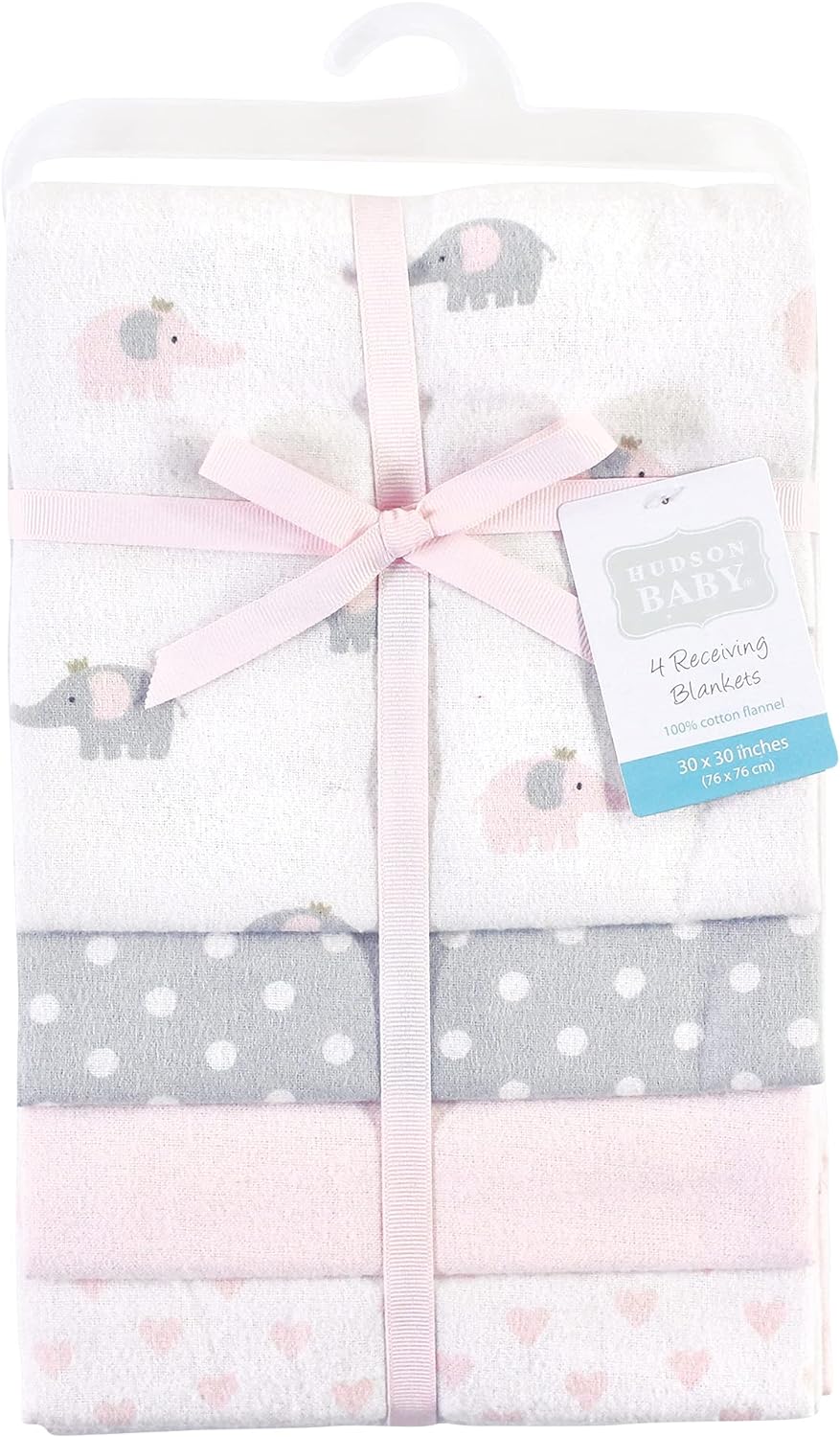 Hudson Baby Unisex Baby Cotton Flannel Receiving Blankets, Eucalyptus, One Size(Pink Gray Elephant One Size)