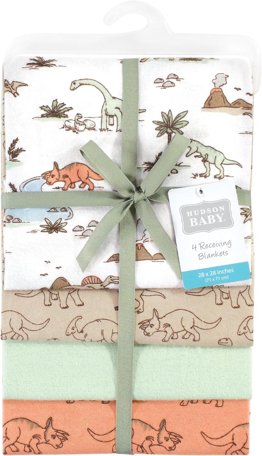 Hudson Baby Unisex Baby Cotton Flannel Receiving Blankets, Sweet Bakery, One Size(Dinosaur Adventures)
