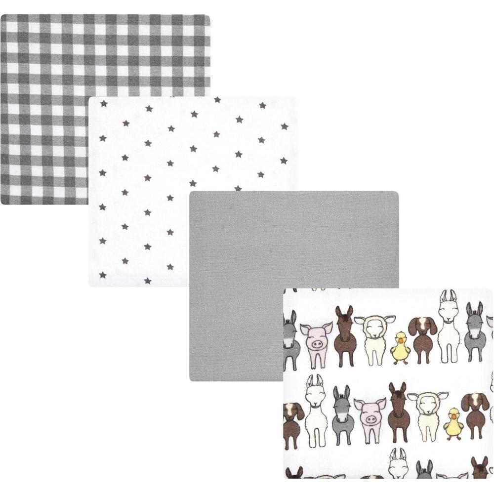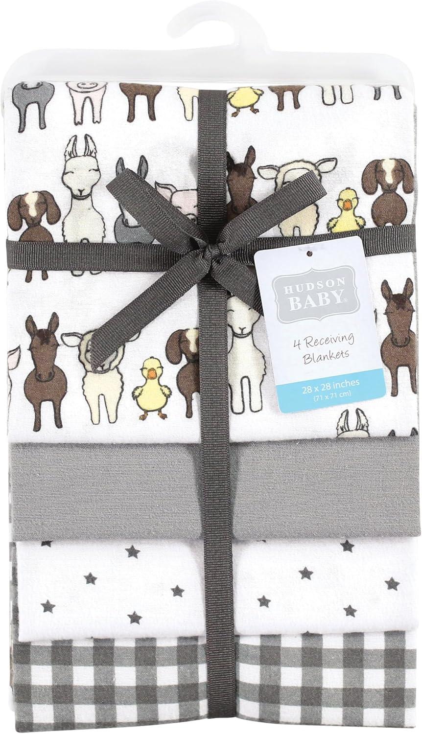 Hudson Baby Unisex Baby Cotton Flannel Receiving Blankets, Sweet Bakery, One Size(Farm Friends Grey)