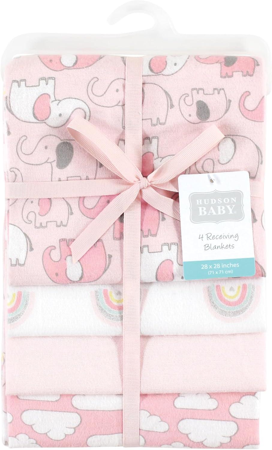 Hudson Baby Unisex Baby Cotton Flannel Receiving Blankets, Sweet Bakery, One Size(Girl New Elephant)