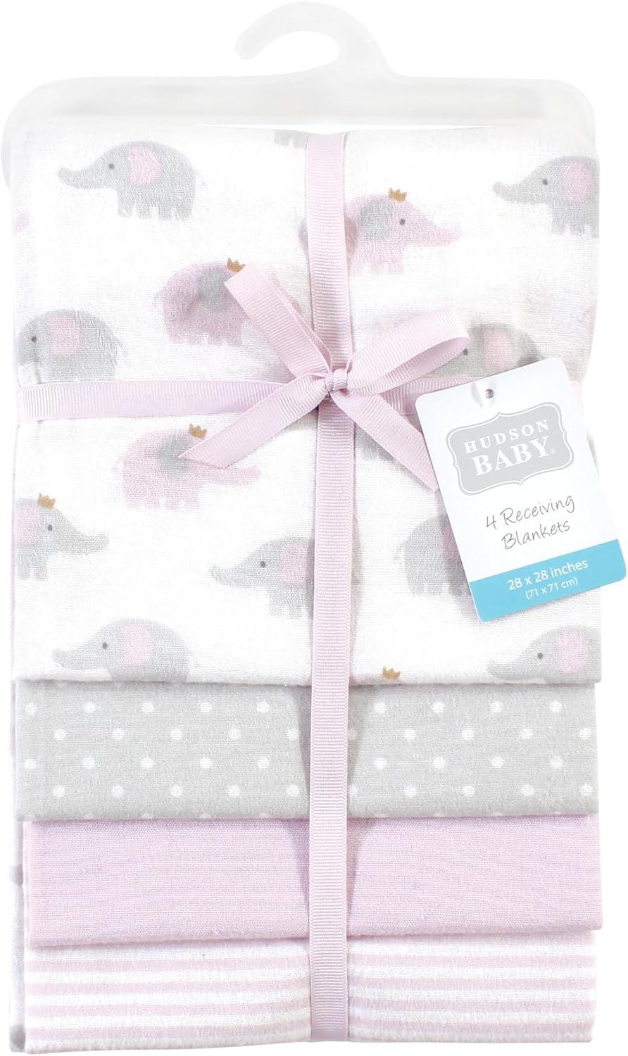 Hudson Baby Unisex Baby Cotton Flannel Receiving Blankets, Sweet Bakery, One Size(Lilac Elephants)