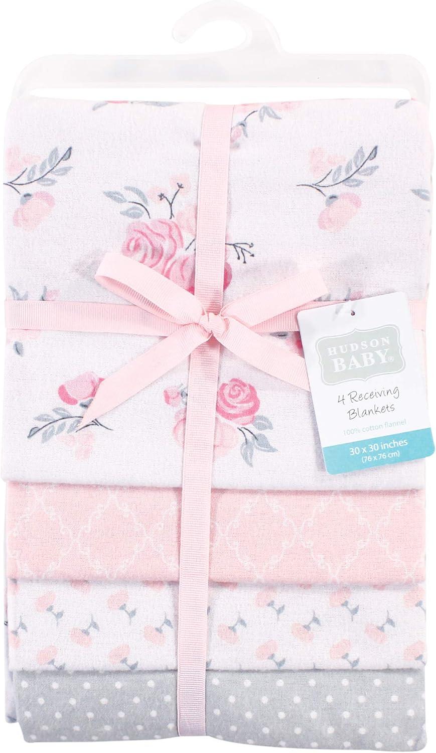 Hudson Baby Unisex Baby Cotton Flannel Receiving Blankets, Sweet Bakery, One Size(Pink Dainty Floral)