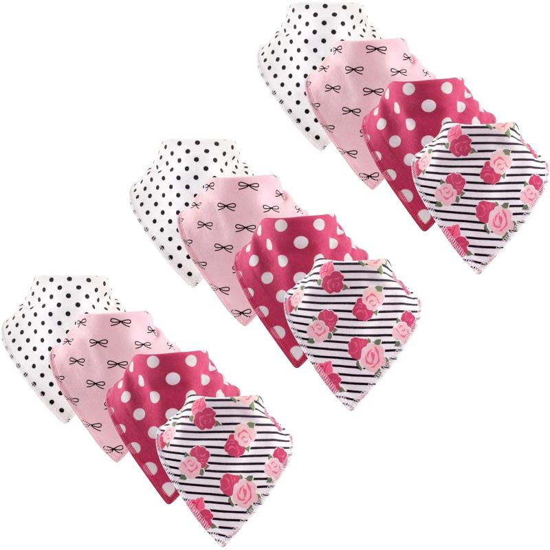 Hudson Baby Unisex Baby Cotton Fleece Bandana Bibs(Roses and Bows 12-pack)