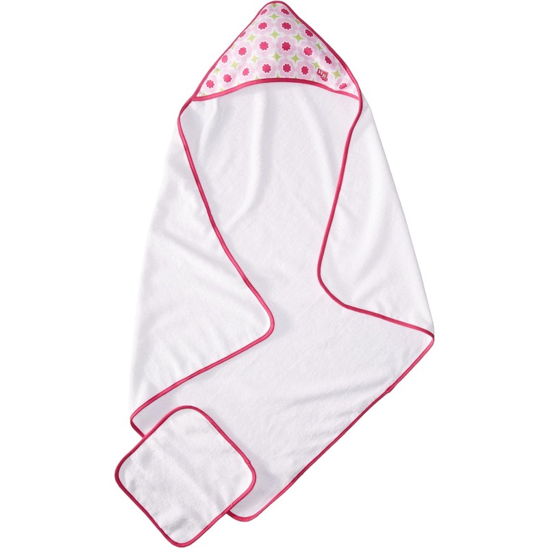 Hudson Baby Unisex Baby Cotton Hooded Towel and Washcloth, Pink Floral, One Size (Pack of 2)(Girl, Seahorse Flower Print One Size)