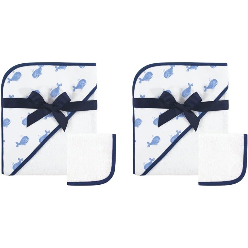 Hudson Baby Unisex Baby Cotton Hooded Towel and Washcloth, Pink Floral, One Size (Pack of 2)(Whale One Size (Pack of 2))