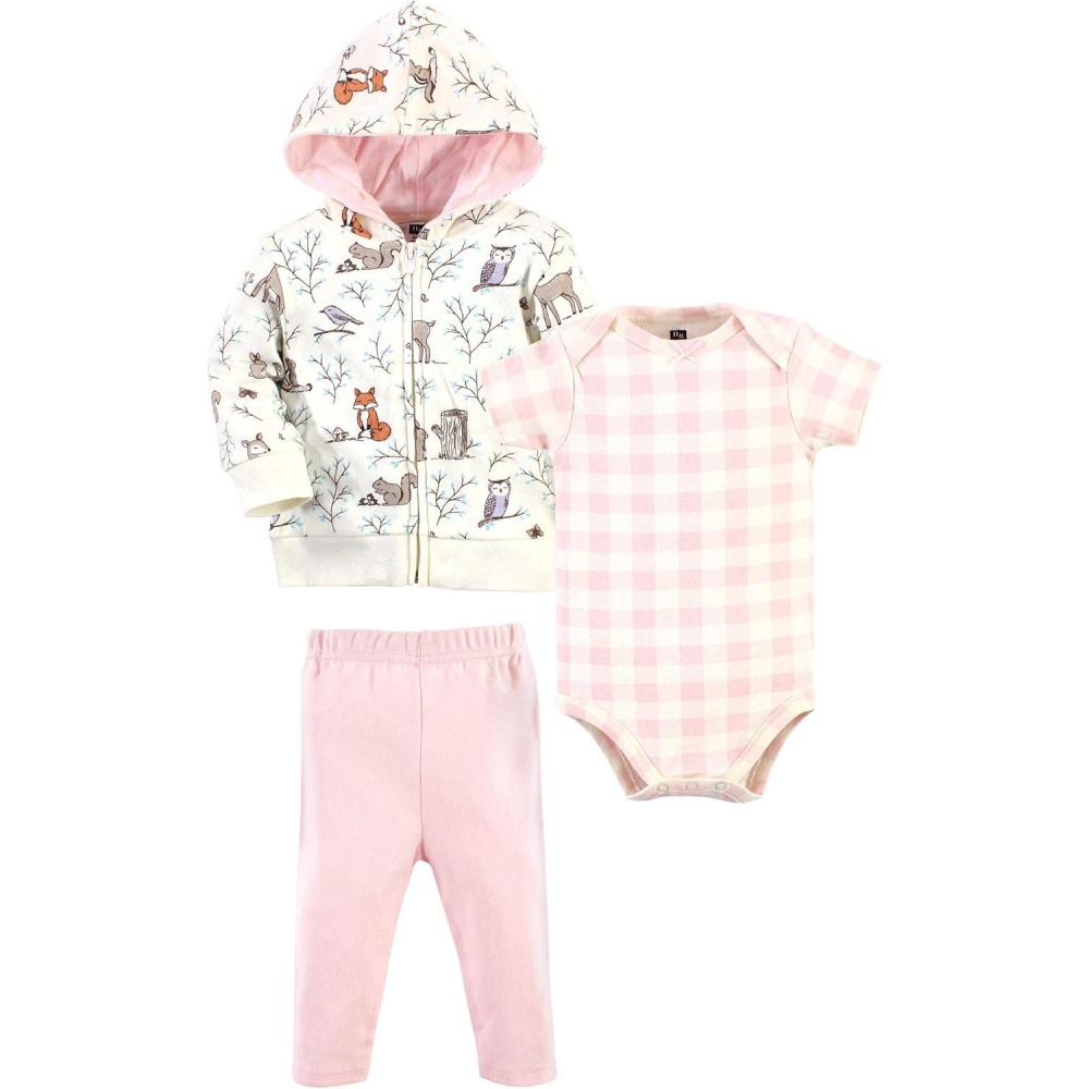 Hudson Baby Unisex Baby Cotton Hoodie, Bodysuit or Tee Top and Pant Set(Enchanted Forest Baby)