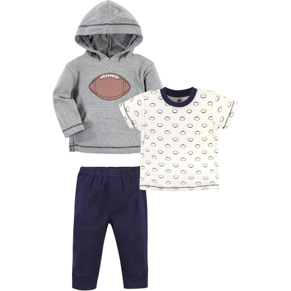 Hudson Baby Unisex Baby Cotton Hoodie, Bodysuit or Tee Top and Pant Set(Football Toddler)