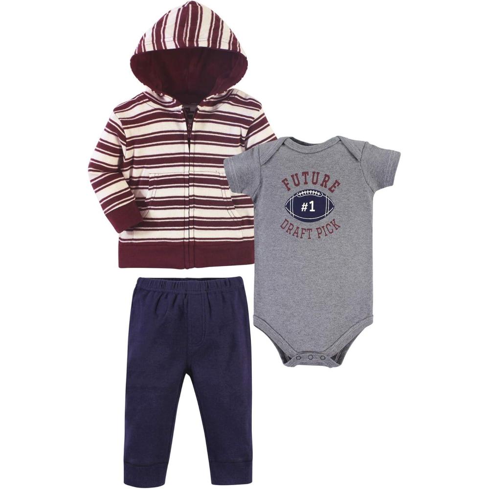 Hudson Baby Unisex Baby Cotton Hoodie, Bodysuit or Tee Top and Pant Set(One Draft Pick Baby)