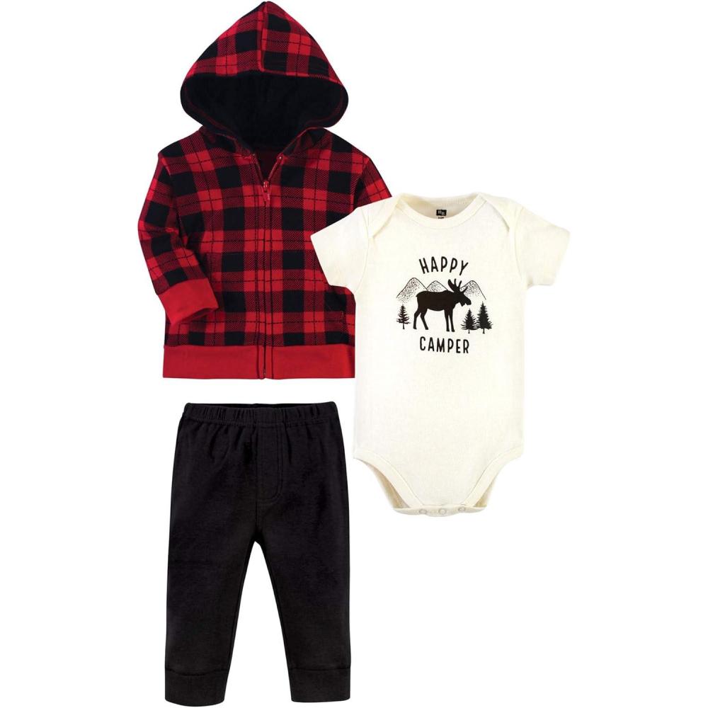 Hudson Baby hoodie, bodysuit or tee top and pant is a great outfit for your little one. Made with 100% cotton, our layette set is optimal for wearing at home or as outer wear.