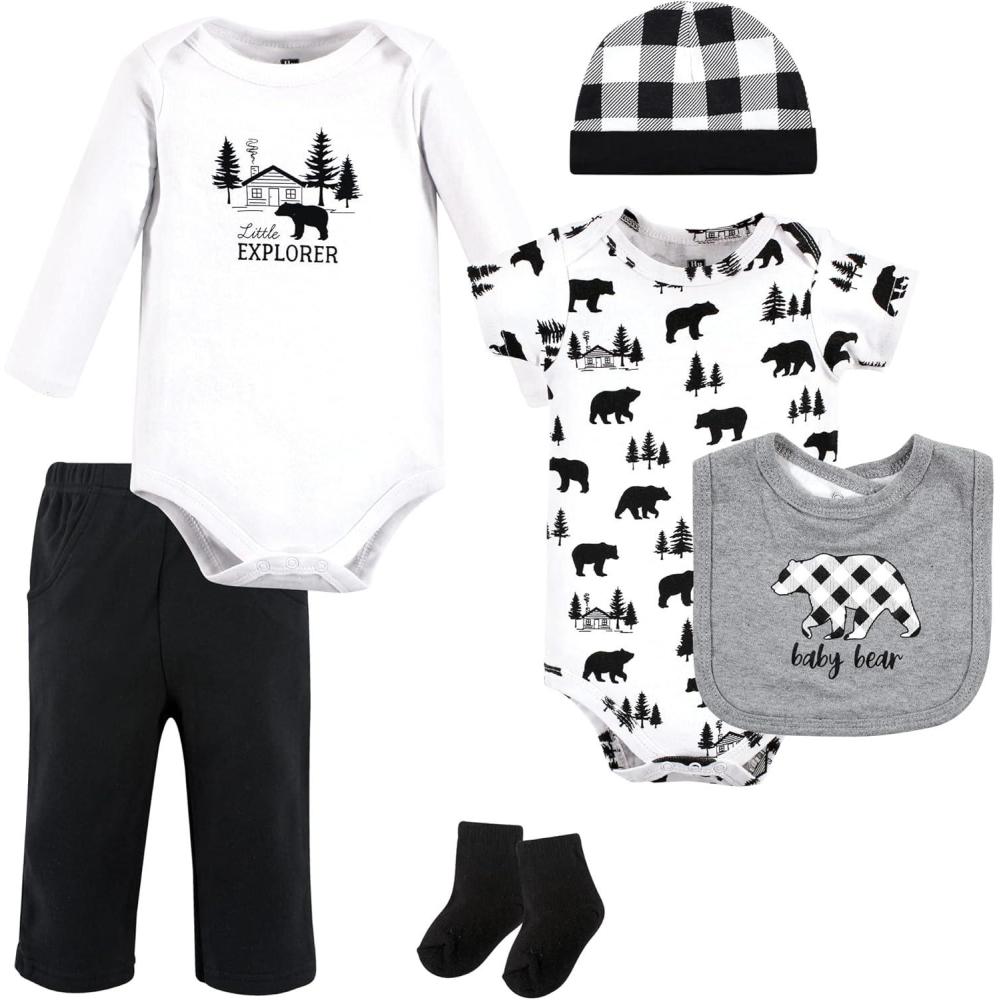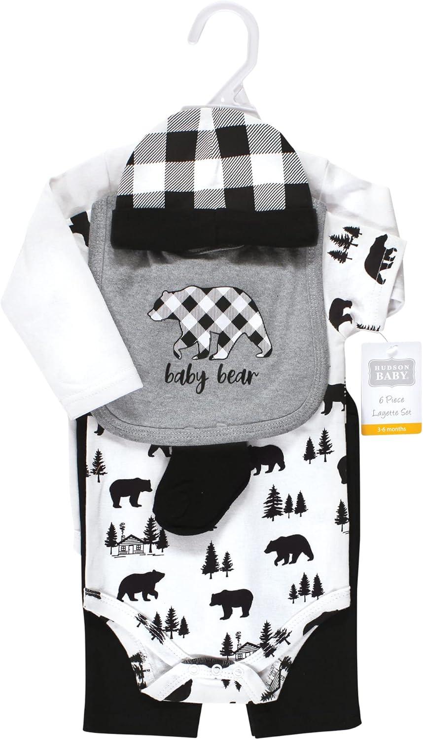 Hudson Baby Unisex Baby Cotton Layette Set(Baby Bear Gray Black)