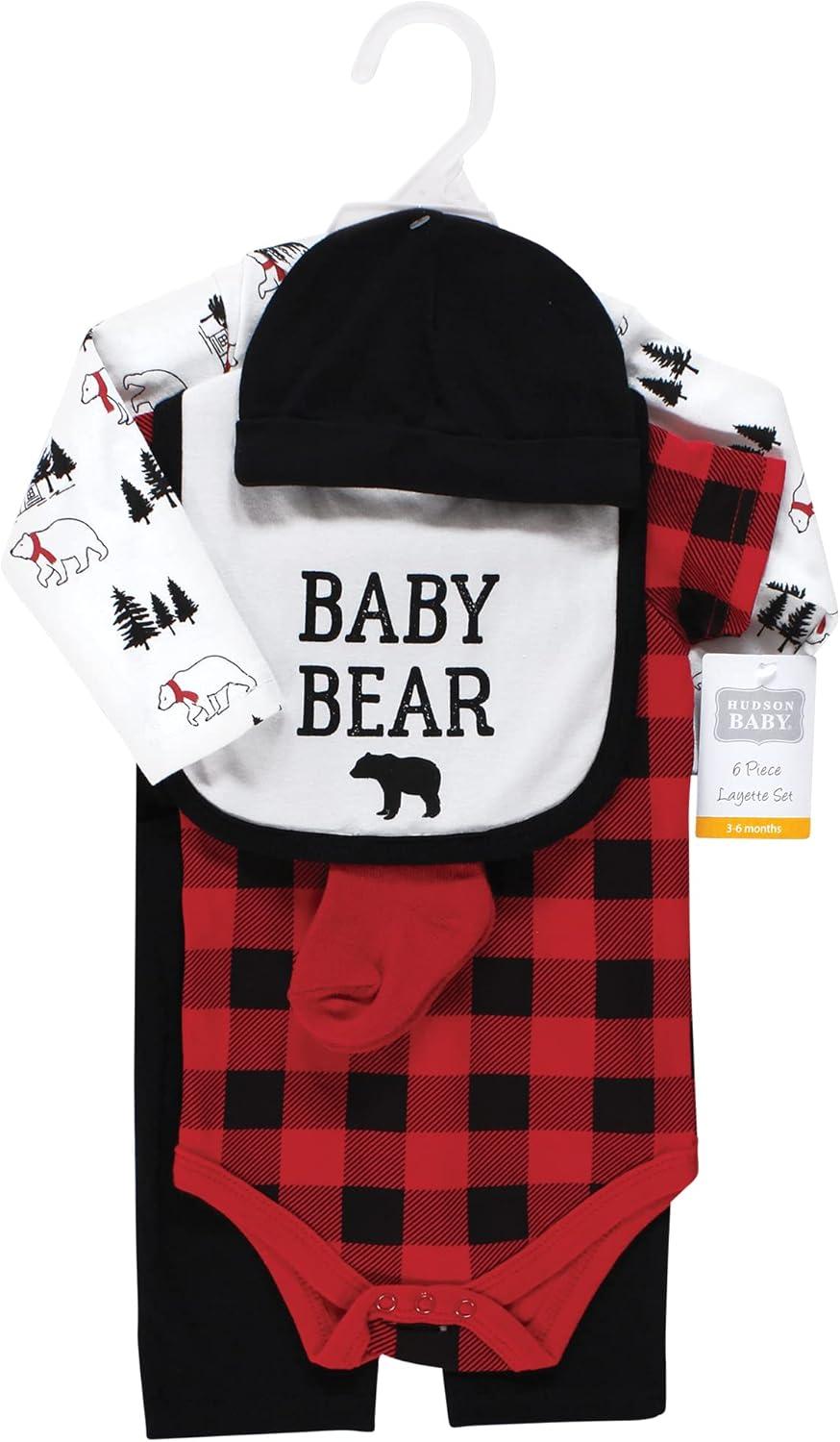 Hudson Baby Unisex Baby Cotton Layette Set(Buffalo Plaid Bear)