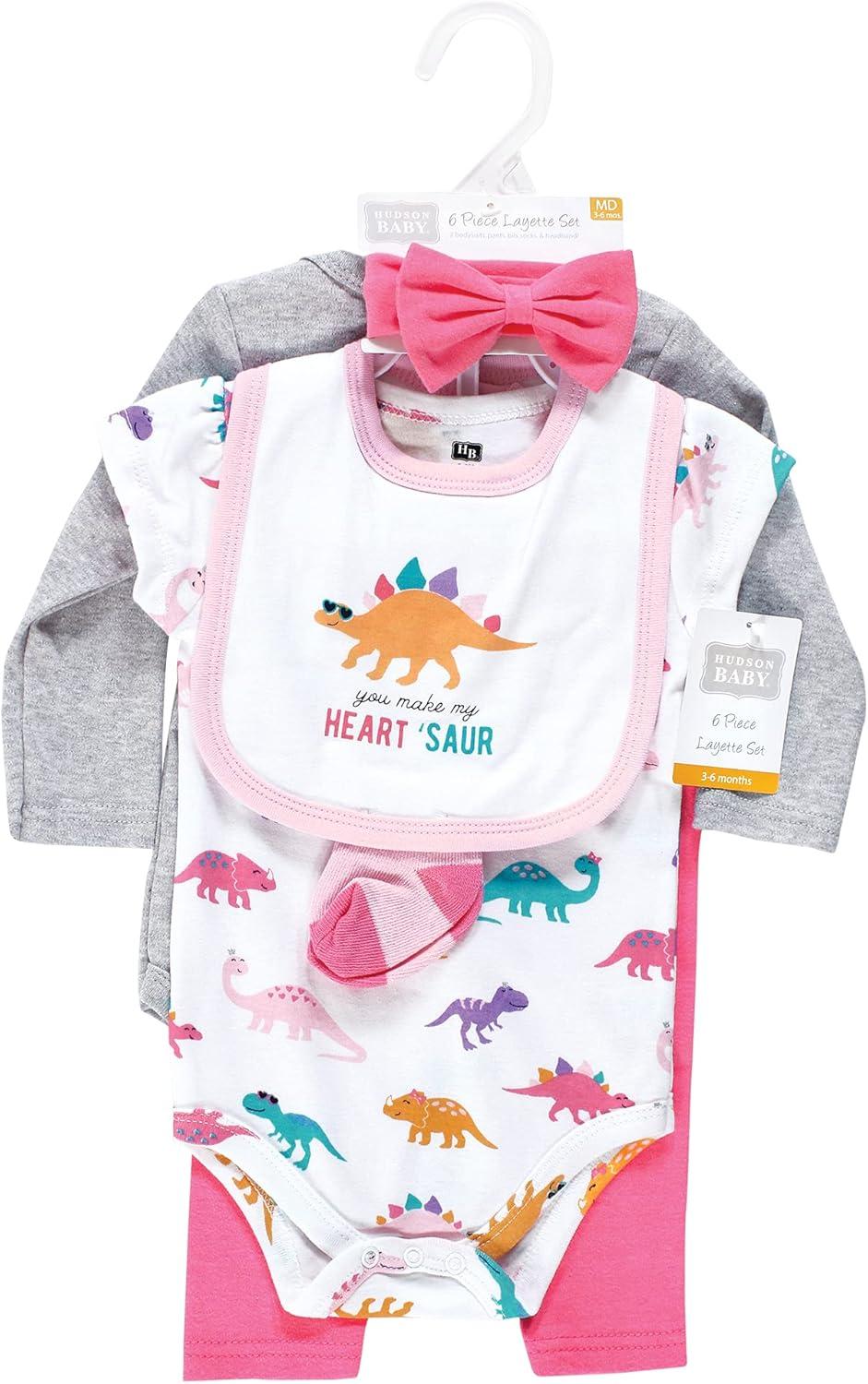 Hudson Baby baby boy's and baby girl's 6 piece layette set includes 2 bodysuits, 1 pair of pants, 1 bib, 1 pair of socks and 1 cotton cap. This mix and match outfit make adorable and trendy options for your little one's wardrobe. Bodysuit, pants and cap are made of 100% super soft cotton, while bib is made of cotton blend to help catch and absorb any drools or spills! Socks are also a cotton blend to stretch with baby's growing feet! Bodysuits have snap closures to make dressing time a breeze. These sets make the perfect baby shower gift!