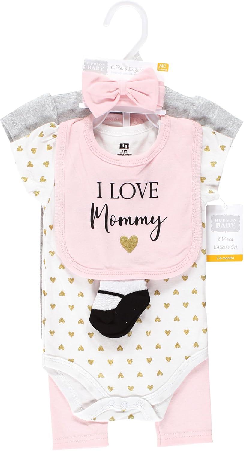 Hudson Baby Unisex Baby Cotton Layette Set(Girl Mommy)