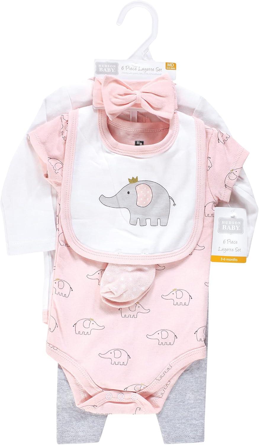 Hudson Baby baby boy's and baby girl's 6 piece layette set includes 2 bodysuits, 1 pair of pants, 1 bib, 1 pair of socks and 1 cotton cap. This mix and match outfit make adorable and trendy options for your little one's wardrobe. Bodysuit, pants and cap are made of 100% super soft cotton, while bib is made of cotton blend to help catch and absorb any drools or spills! Socks are also a cotton blend to stretch with baby's growing feet! Bodysuits have snap closures to make dressing time a breeze. These sets make the perfect baby shower gift!