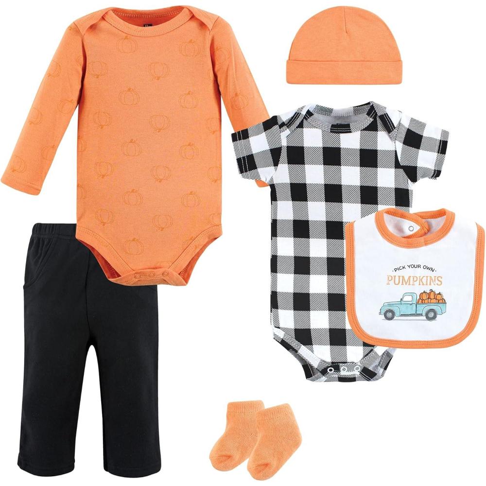 Hudson Baby Unisex Baby Cotton Layette Set(Pumpkin Truck)