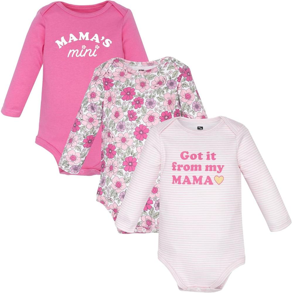 Hudson Baby Unisex Baby Cotton Long-Sleeve Bodysuits 3-Pack(Mama Floral)