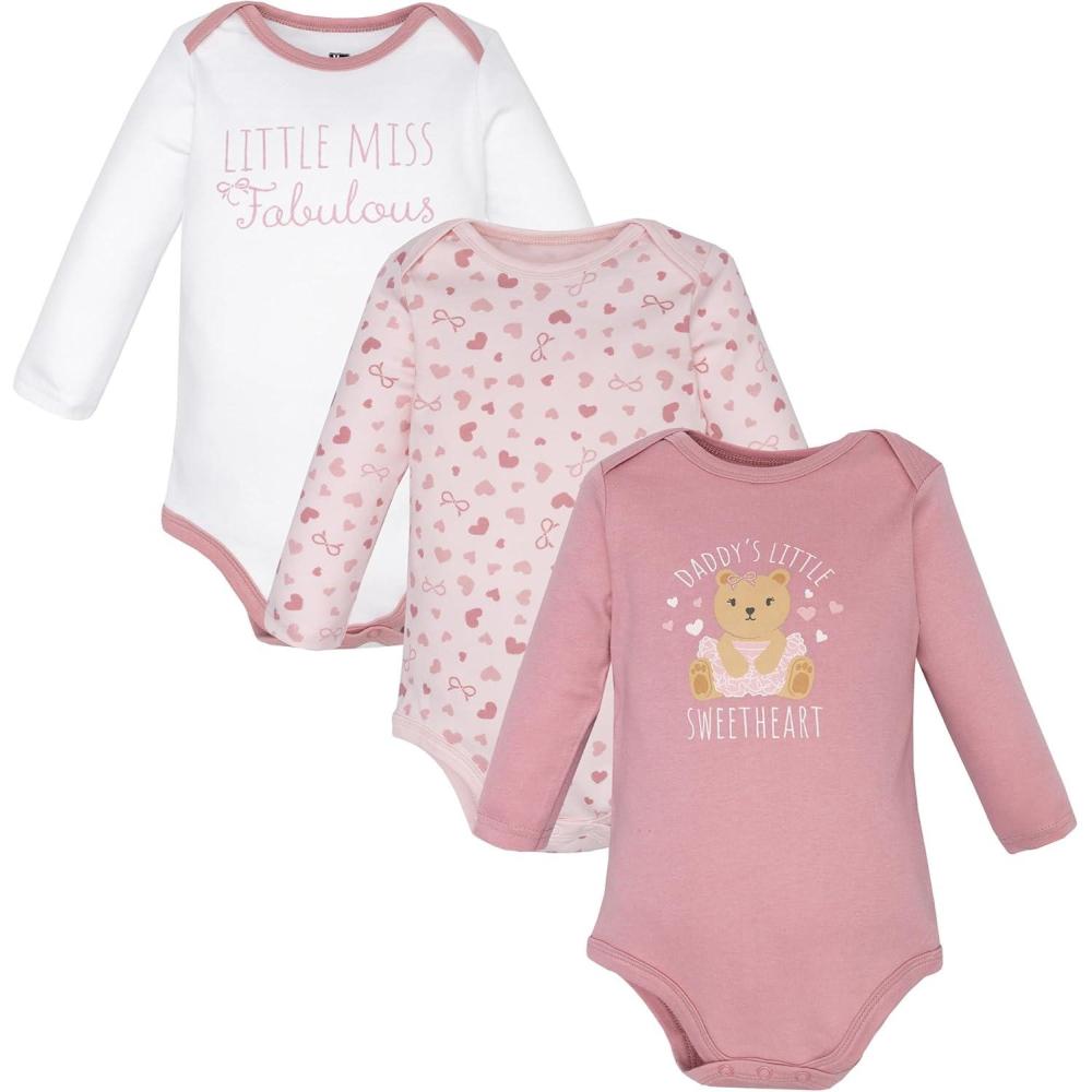 Hudson Baby Unisex Baby Cotton Long-Sleeve Bodysuits 3-Pack(Sweetheart Teddy)