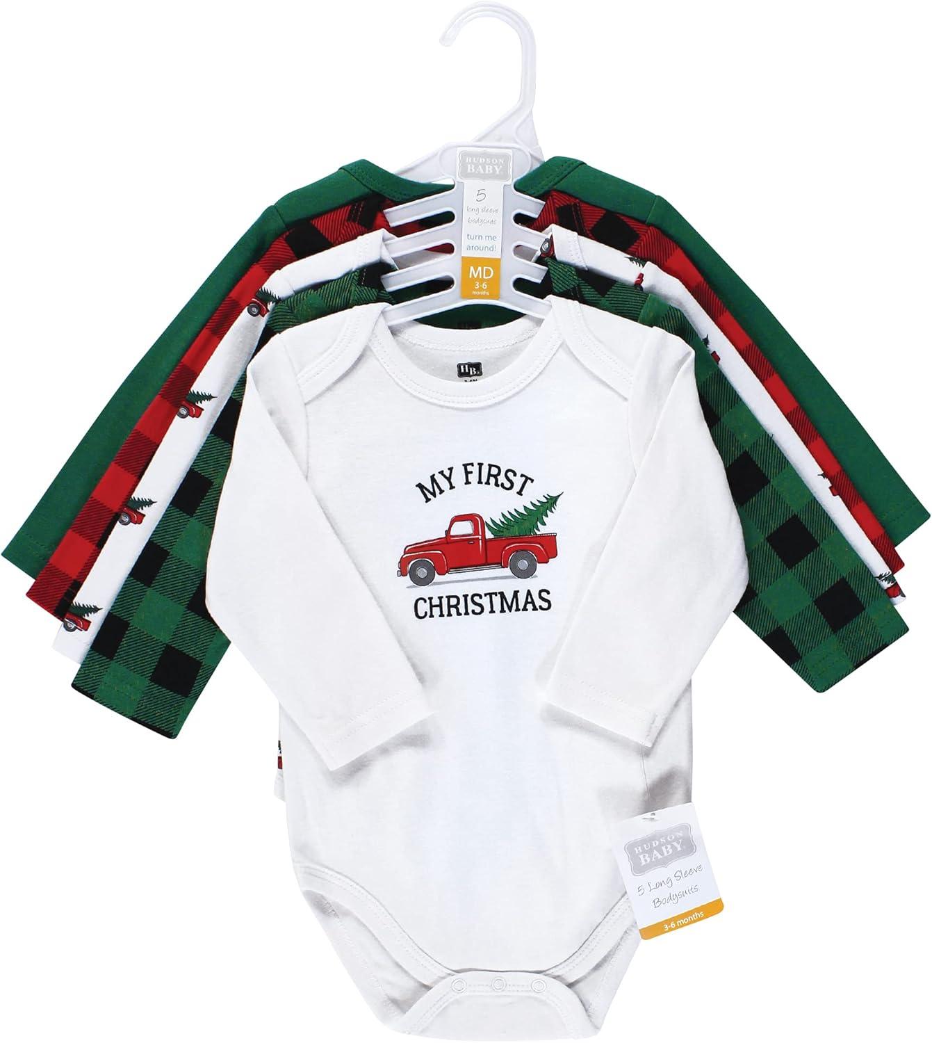 Hudson Baby unisex-baby Cotton Long-sleeve Bodysuits 5-pack(Christmas Tree)