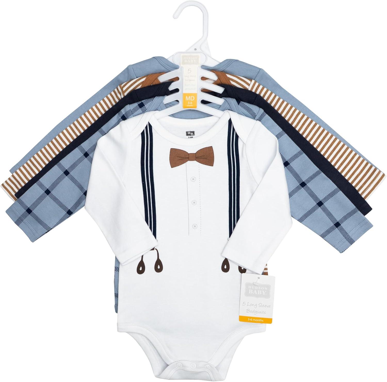Hudson Baby long-sleeve bodysuits are an essential part of baby's wardrobe. Our bodysuits feature adorable prints, embroideries, stripes and solids and provide a comfortable base layer that's great for pairing with pants, shorts, or even wearing under outfits. Our bodysuits are comfortable and cozy for all-day, everyday wear for your little one.