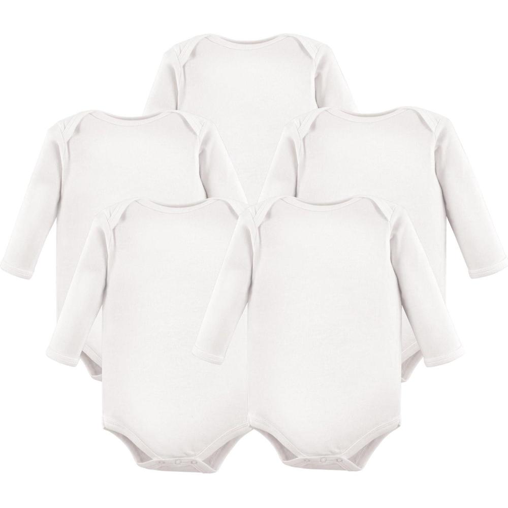 Hudson Baby unisex-baby Cotton Long-sleeve Bodysuits 5-pack(White)