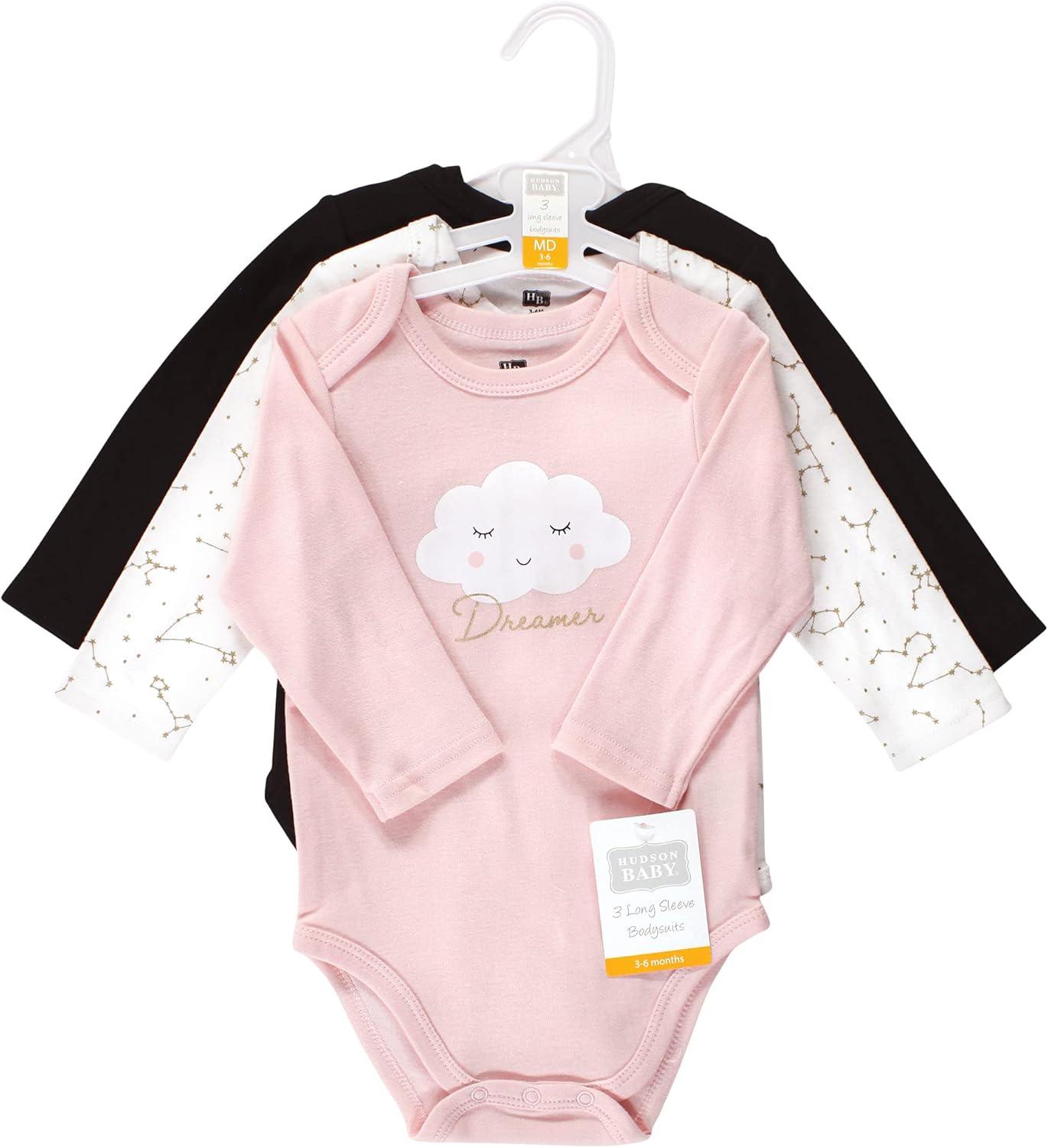 Hudson Baby long-sleeve bodysuits are an essential part of baby's wardrobe. Our bodysuits feature adorable prints, embroideries, stripes and solids and provide a comfortable base layer that's great for pairing with pants, shorts, or even wearing under outfits. Our bodysuits are comfortable and cozy for all-day, everyday wear for your little one.