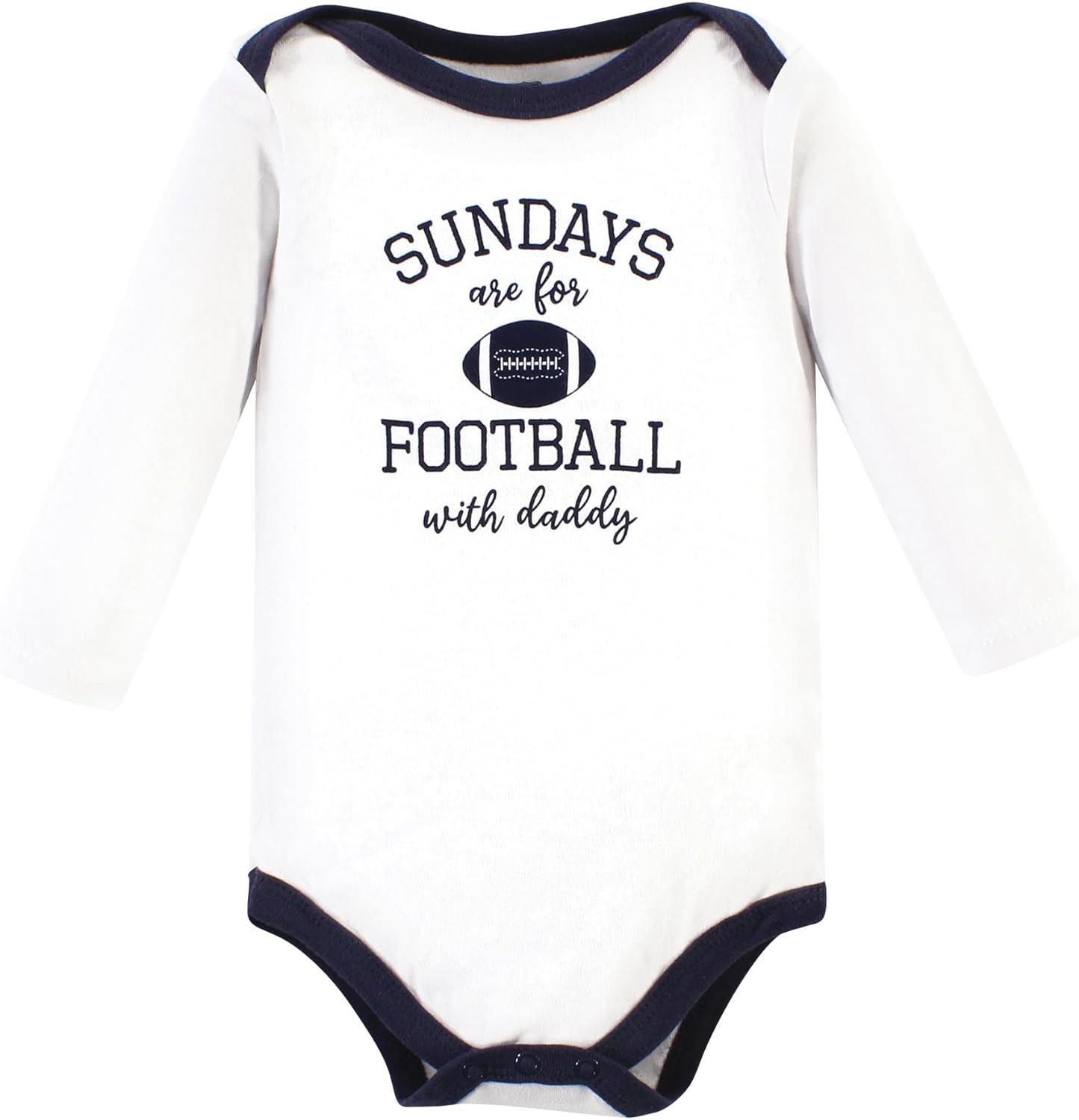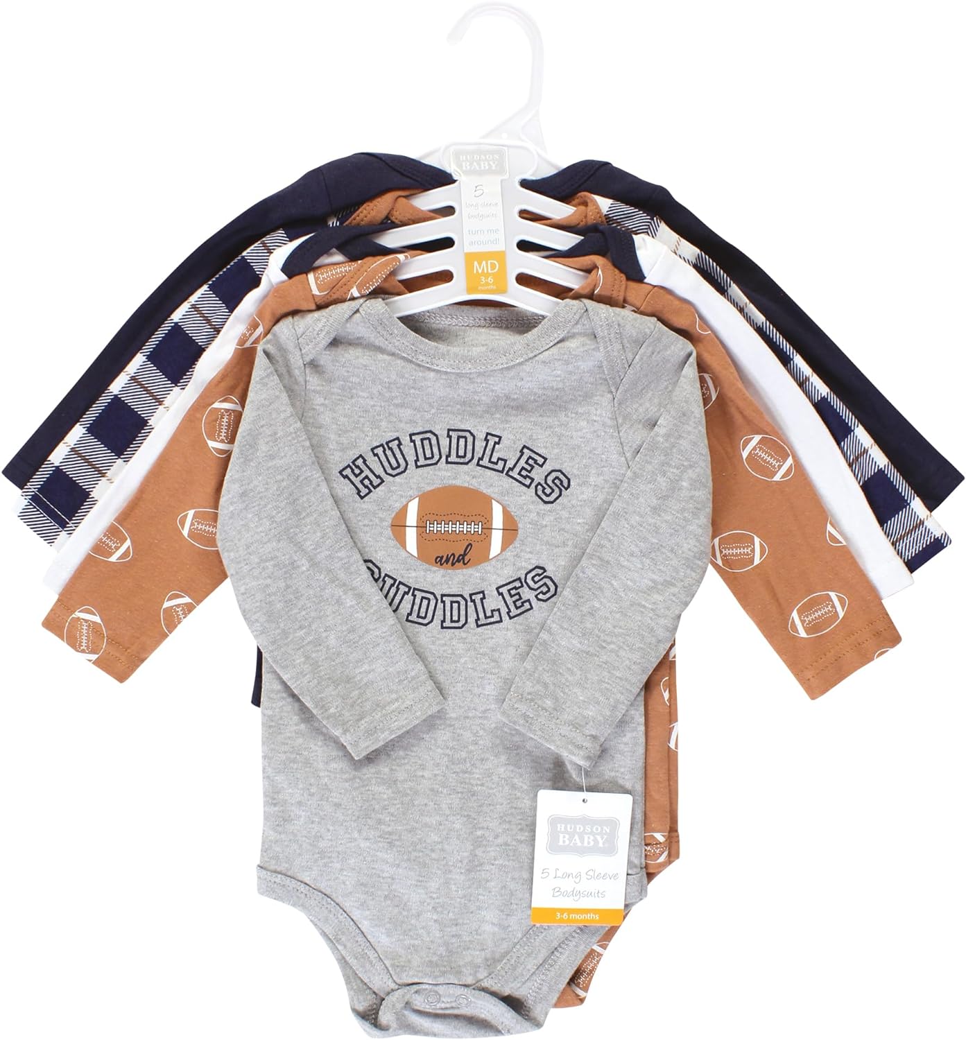 Save big on Hudson Baby Unisex Baby Cotton Long-Sleeve Bodysuits(Football Huddles 5-pack) during our summer blowout sale. Limited quantities available.