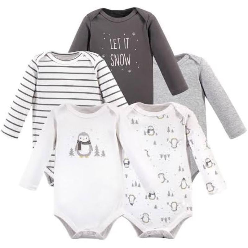 Hudson Baby Unisex Baby Cotton Long-Sleeve Bodysuits(Gray Penguin)