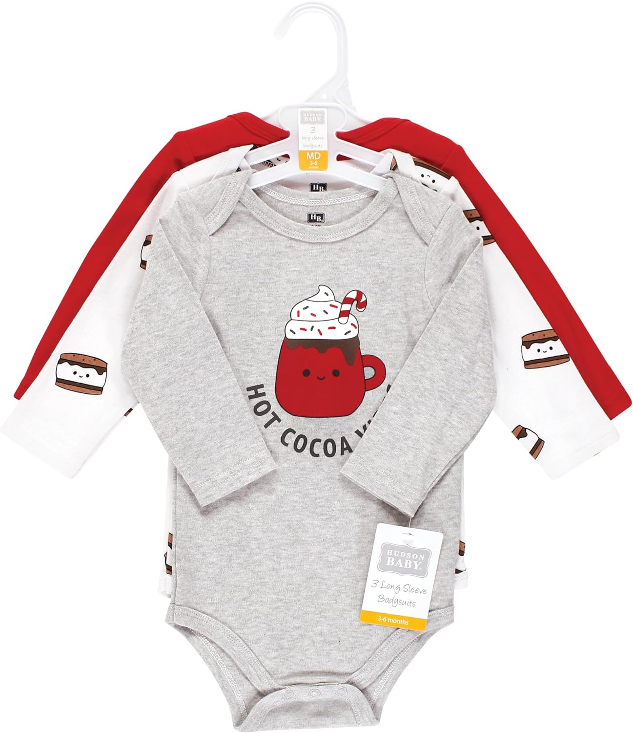 Hudson Baby Unisex Baby Cotton Long-Sleeve Bodysuits(Hot Cocoa Vibes)