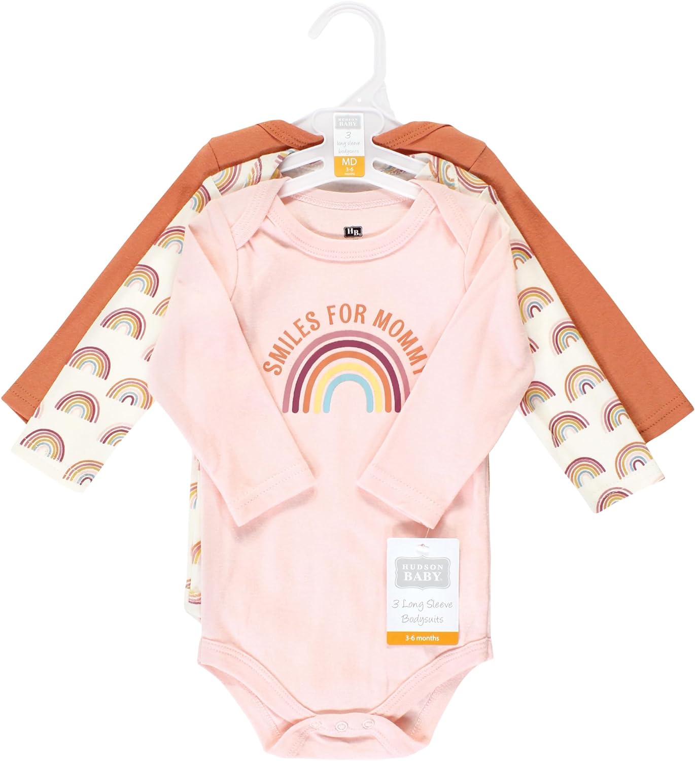 Hudson Baby Unisex Baby Cotton Long-Sleeve Bodysuits(Sunshine Rainbows 3-pack)