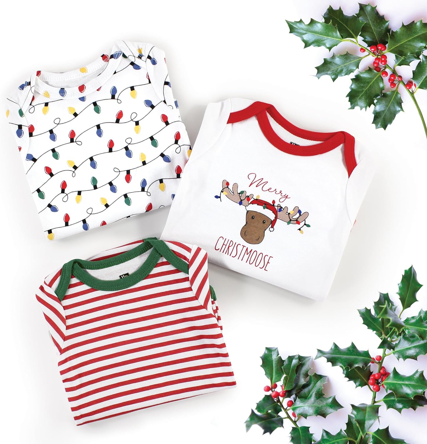 Hudson Baby Unisex Baby Cotton Long-Sleeve Bodysuits(White Christmoose 3-pack)