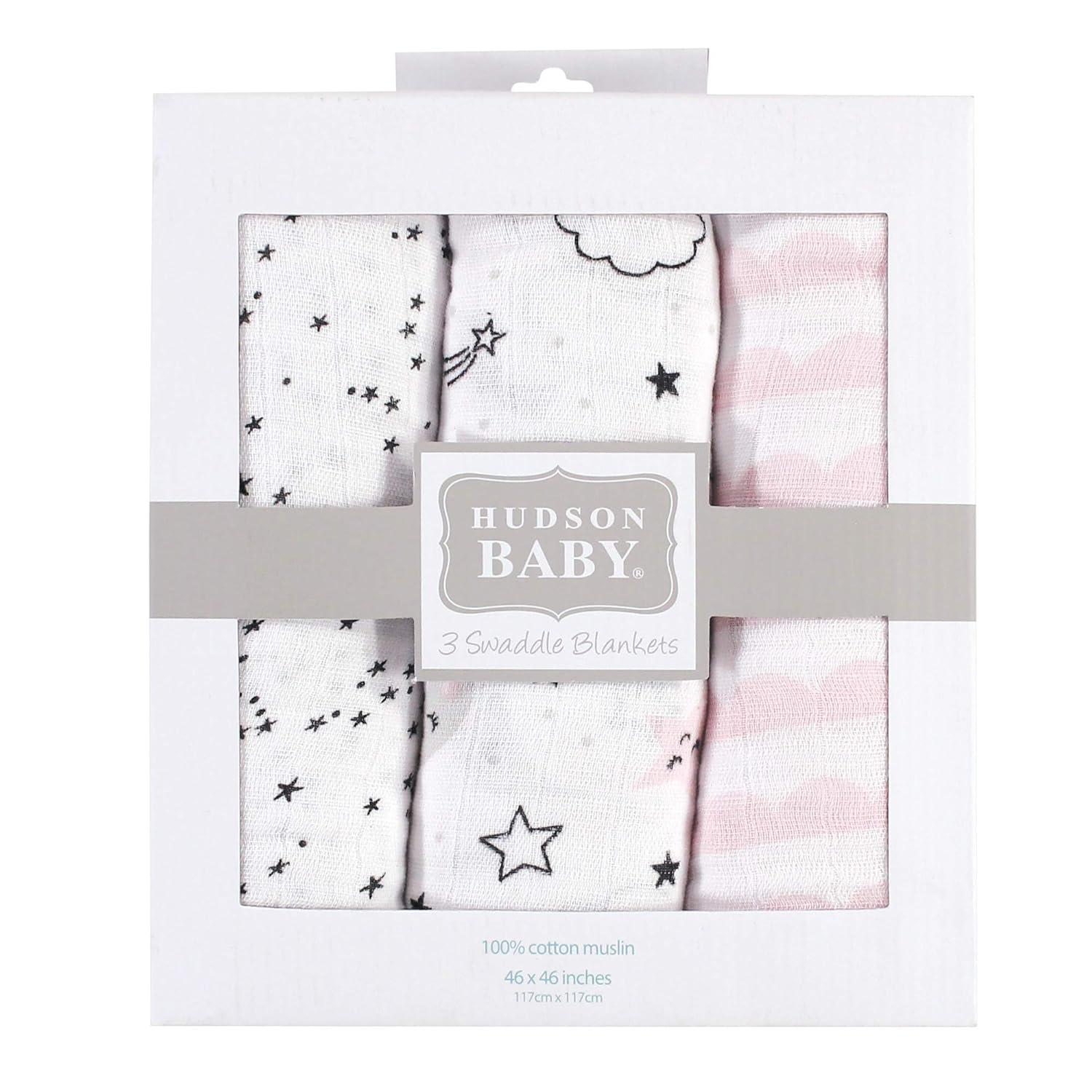 Hudson Baby muslin swaddle blankets are made of soft, gentle and breathable 100% muslin cotton fabric to help your baby sleep more comfortably. Our blankets are sized generously to make swaddling easy, cozy and comfortable. Our blankets are safe and gentle on baby's skin. Hudson Baby muslin blankets can also be used as a nursing cover, stroller cover, and for tummy time.