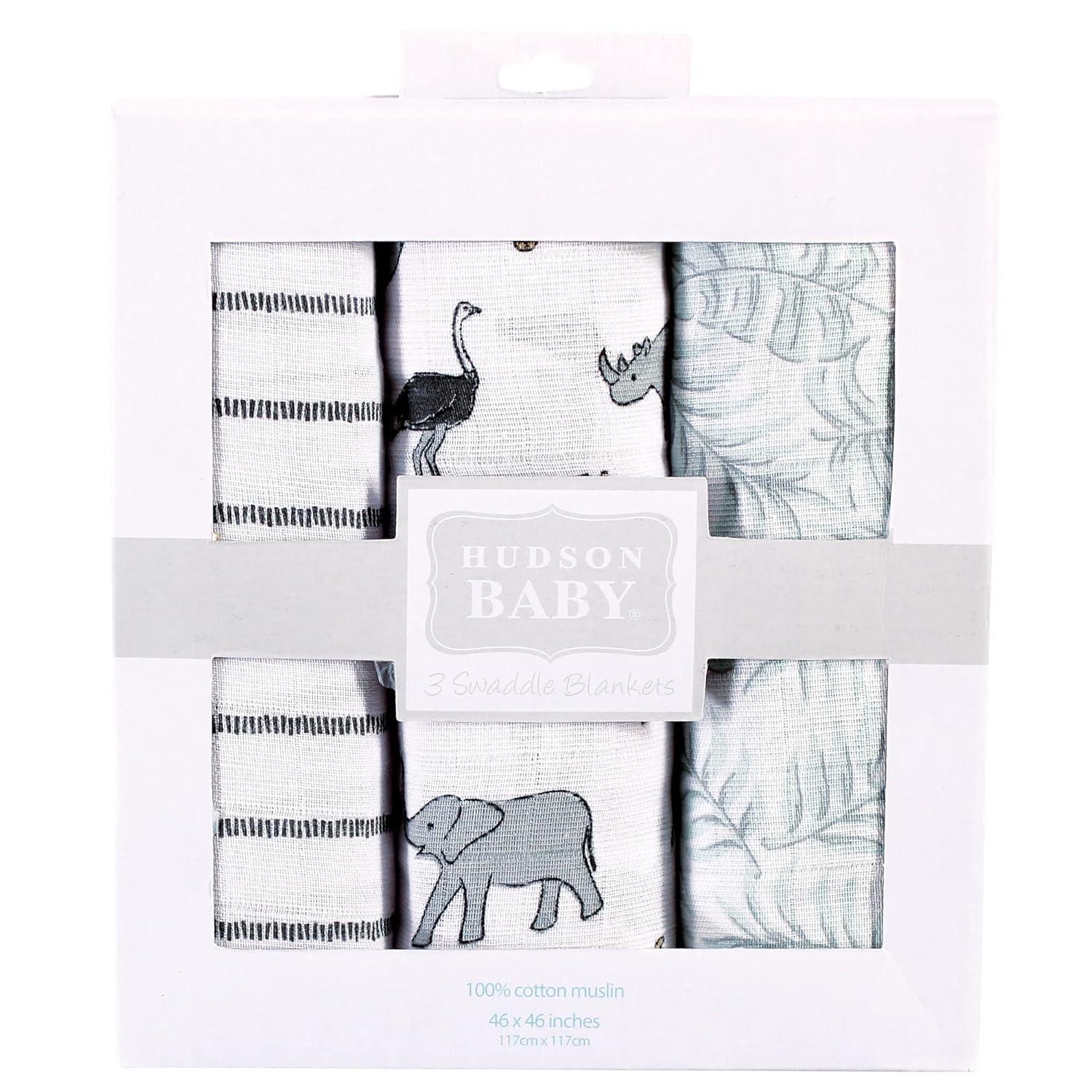 Hudson Baby muslin swaddle blankets are made of soft, gentle and breathable 100% muslin cotton fabric to help your baby sleep more comfortably. Our blankets are sized generously to make swaddling easy, cozy and comfortable. Our blankets are safe and gentle on baby's skin. Hudson Baby muslin blankets can also be used as a nursing cover, stroller cover, and for tummy time.