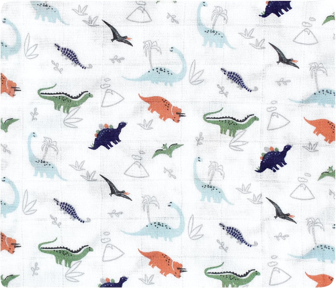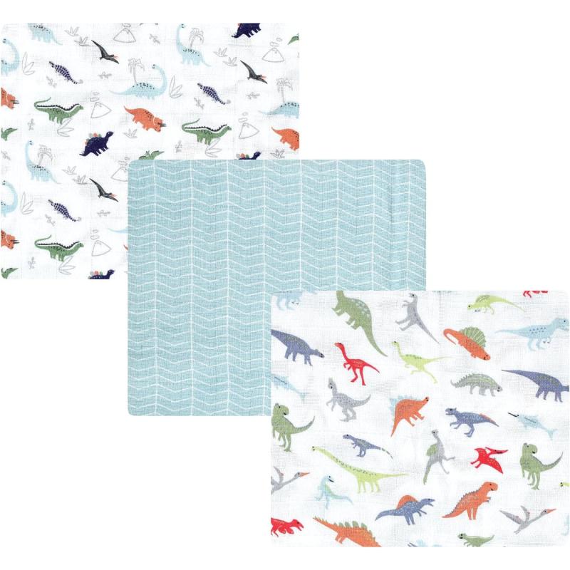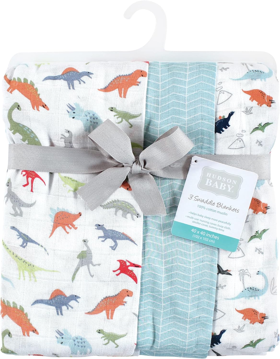 Hudson Baby Unisex Baby Cotton Muslin Swaddle Blankets, Woodland 3-Pack, 3-Pack(Dino)