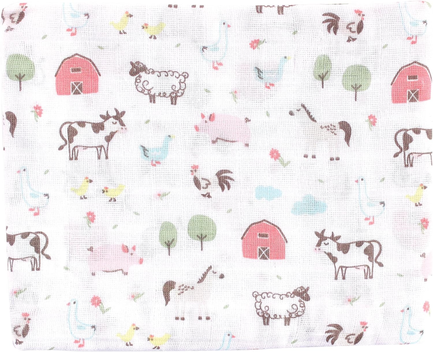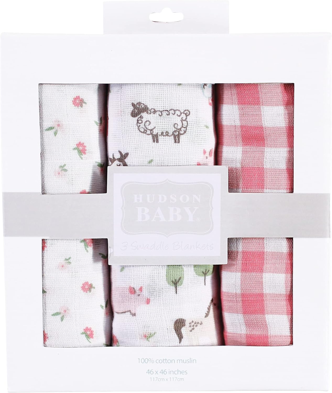 Hudson Baby Unisex Baby Cotton Muslin Swaddle Blankets, Woodland 3-Pack, 3-Pack(Girl Farm Animals)