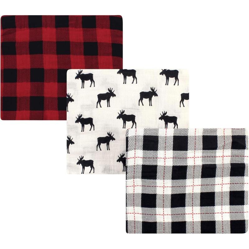 Hudson Baby Unisex Baby Cotton Muslin Swaddle Blankets, Woodland 3-Pack, 3-Pack(Moose)