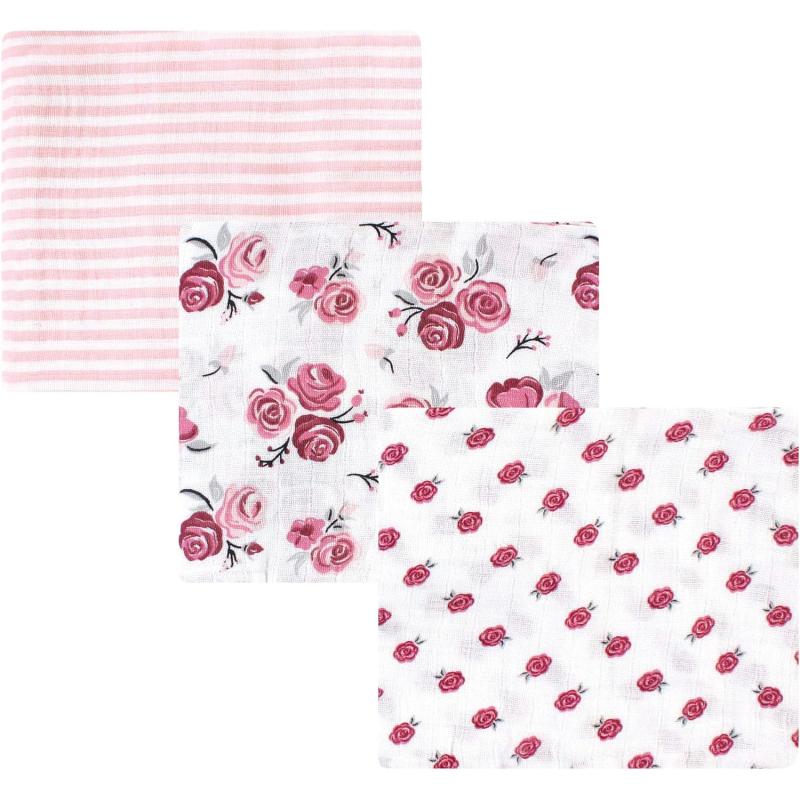 Hudson Baby Unisex Baby Cotton Muslin Swaddle Blankets, Woodland 3-Pack, 3-Pack(Rose)