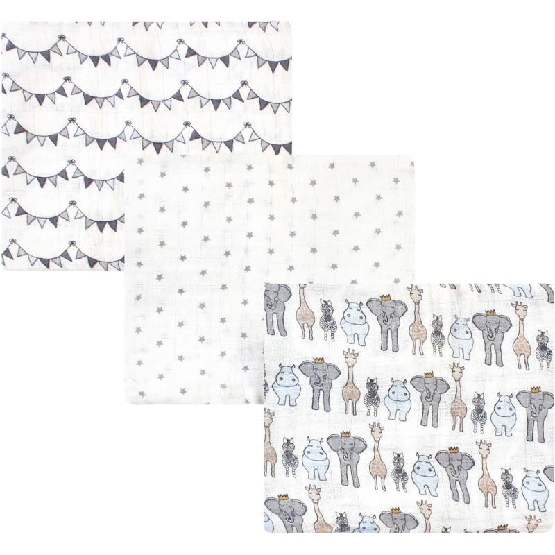 Hudson Baby Unisex Baby Cotton Muslin Swaddle Blankets, Woodland 3-Pack, 3-Pack(Royal Safari)