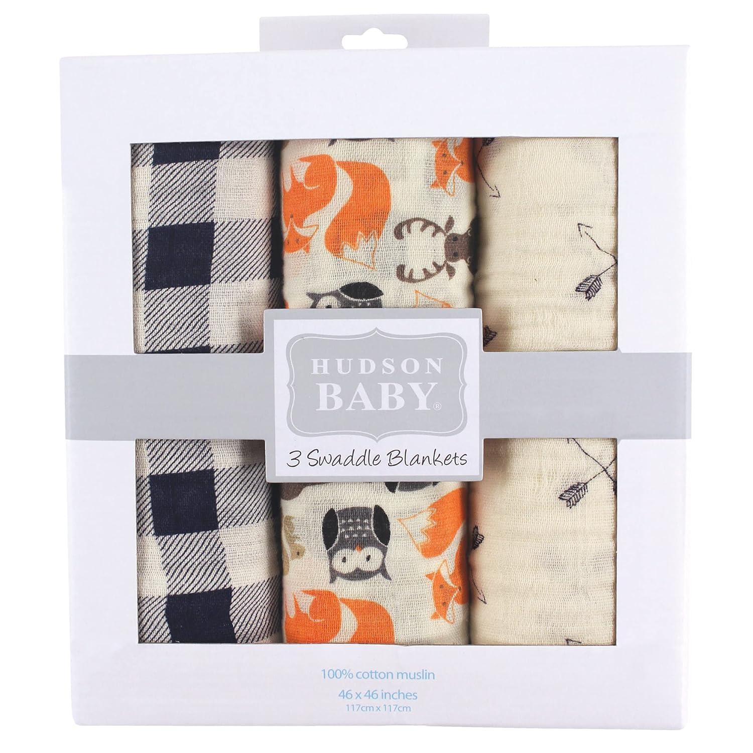 imageHudson Baby Unisex Baby Cotton Muslin Swaddle Blankets Woodland 3PackDreamer
