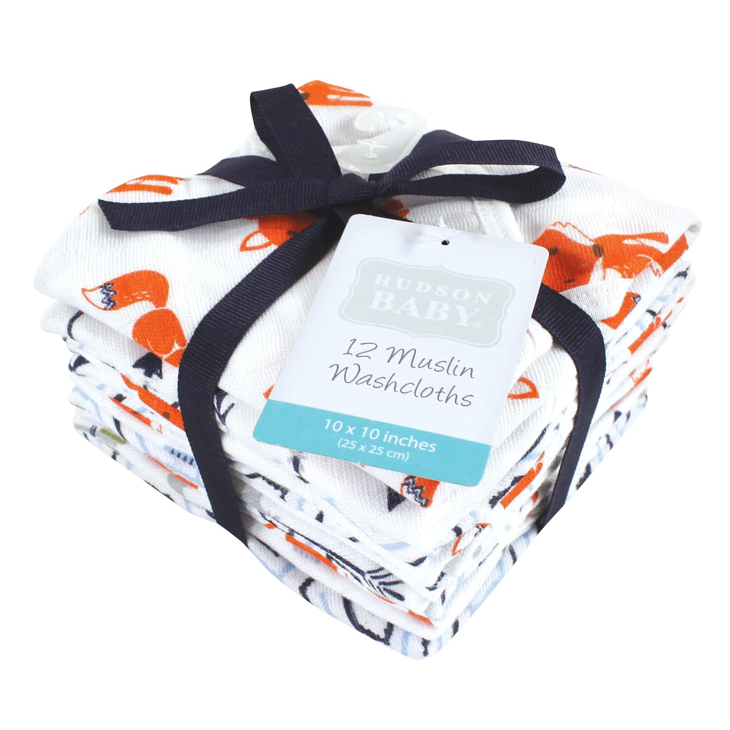 Hudson Baby Unisex Baby Cotton Muslin Washcloths, Woodland, One Size(Foxes One Size)