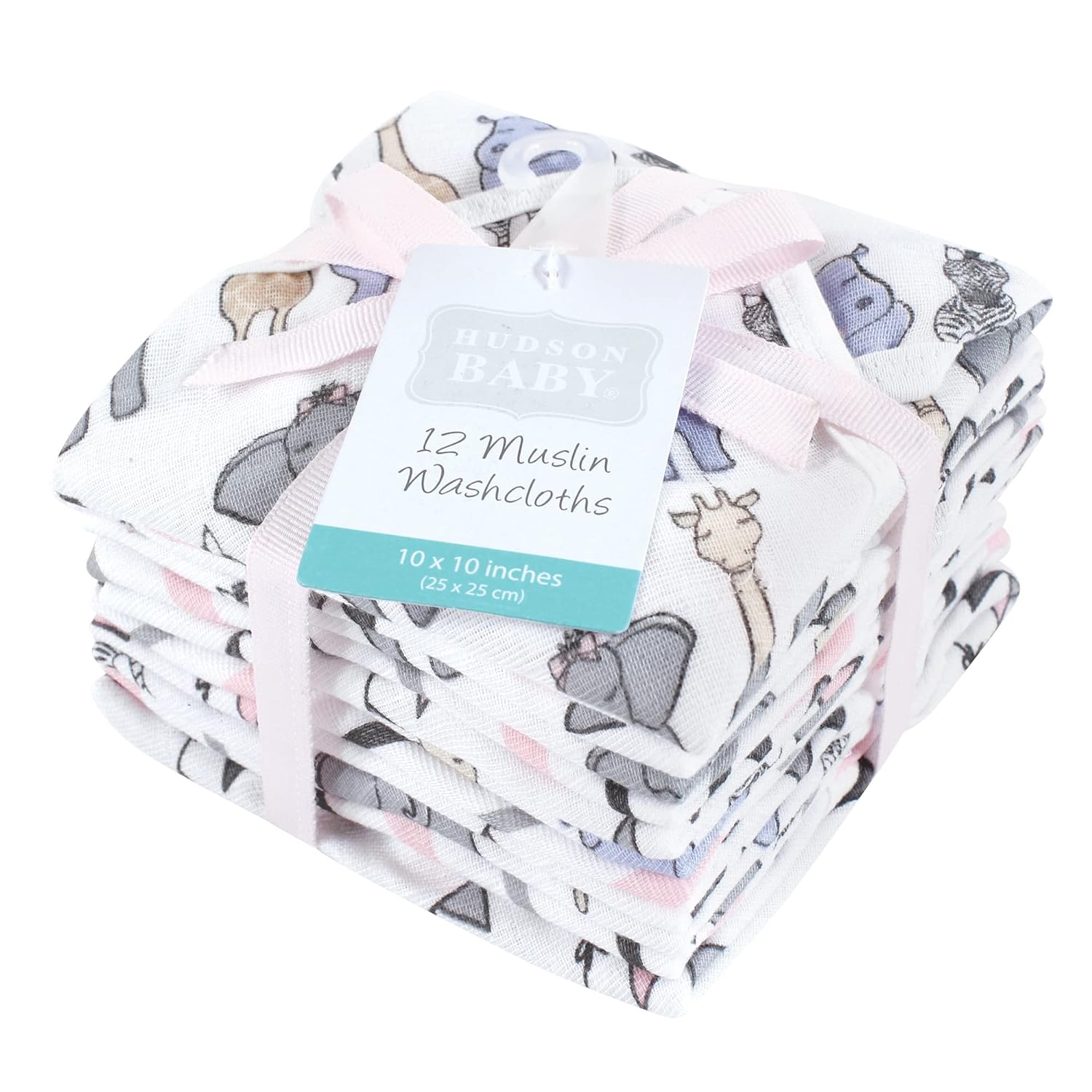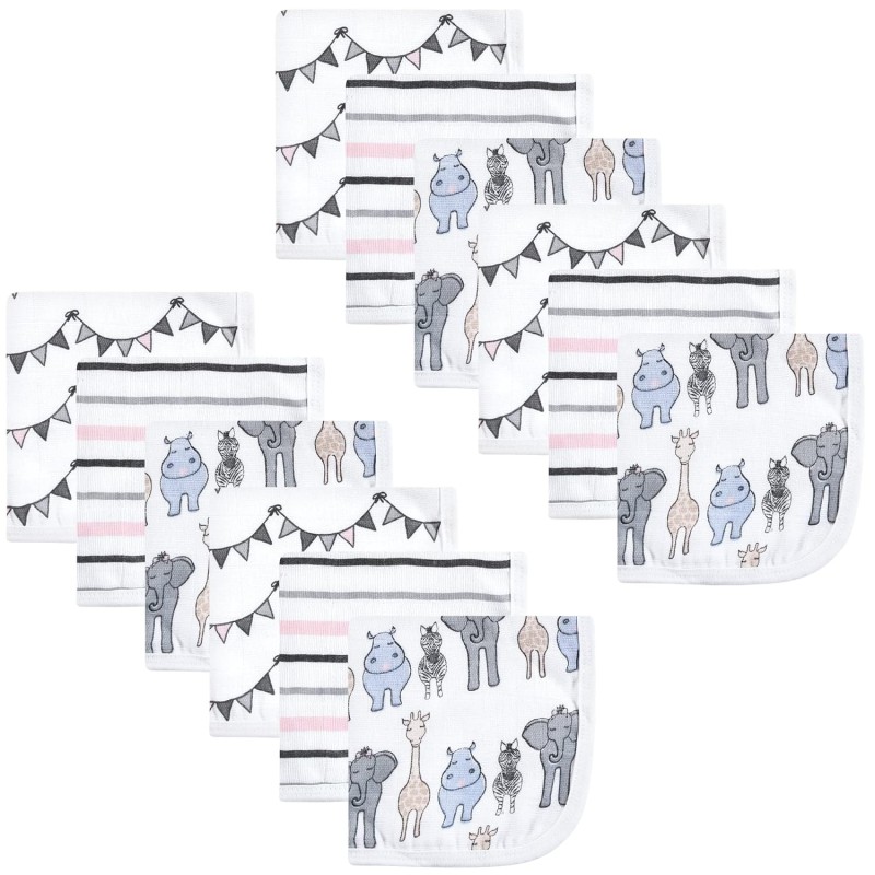 Hudson Baby Unisex Baby Cotton Muslin Washcloths, Woodland, One Size(Pink Safari One Size)