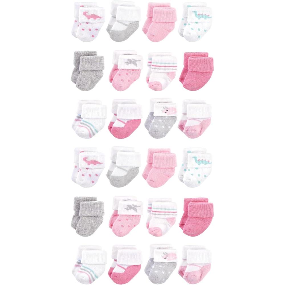 Hudson Baby Unisex Baby Cotton Rich Baby Terry Socks 24-Pack(Girl Dino)