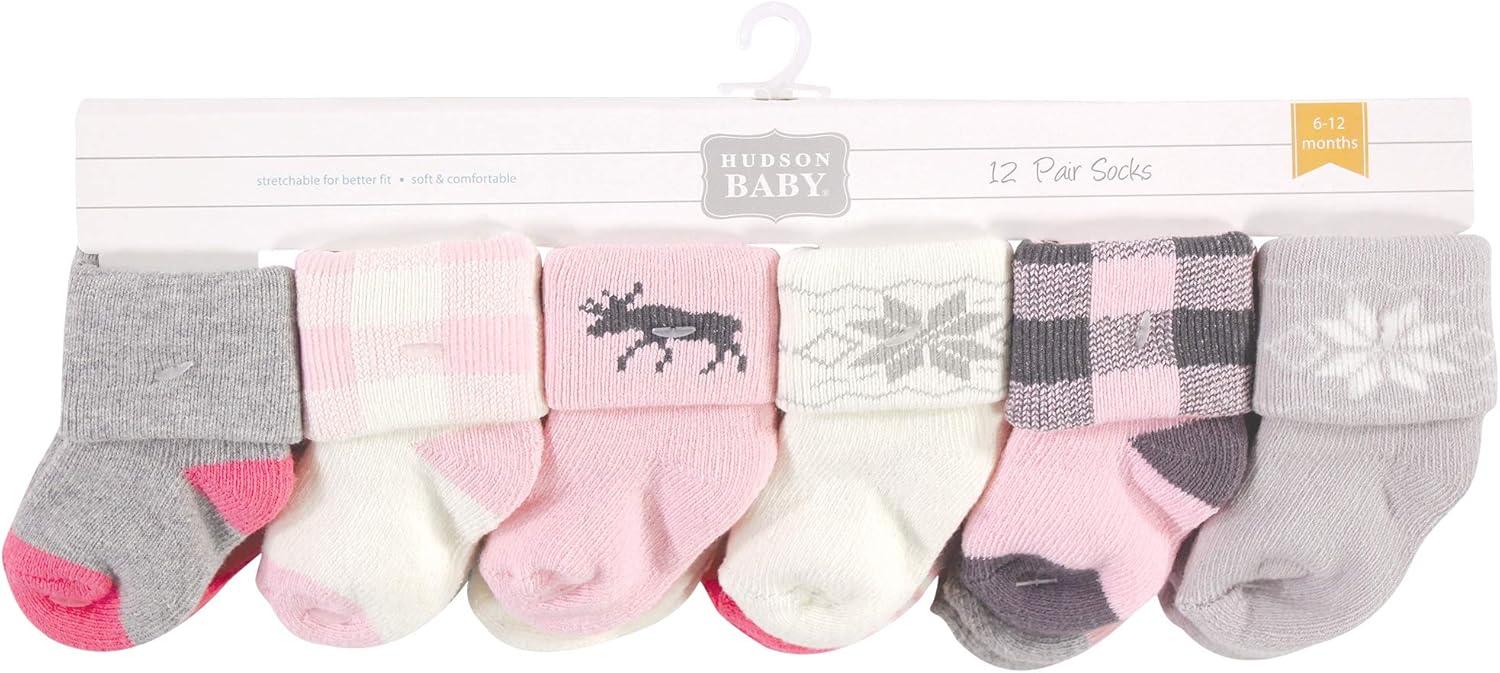 Hudson Baby Unisex Baby Cotton Rich Baby Terry Socks 24-Pack(Pink Moose)