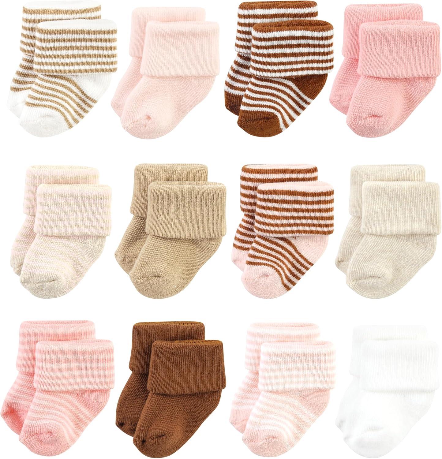 Hudson Baby Unisex Baby Cotton Rich Baby Terry Socks 24-Pack(Pink Tan Stripe)