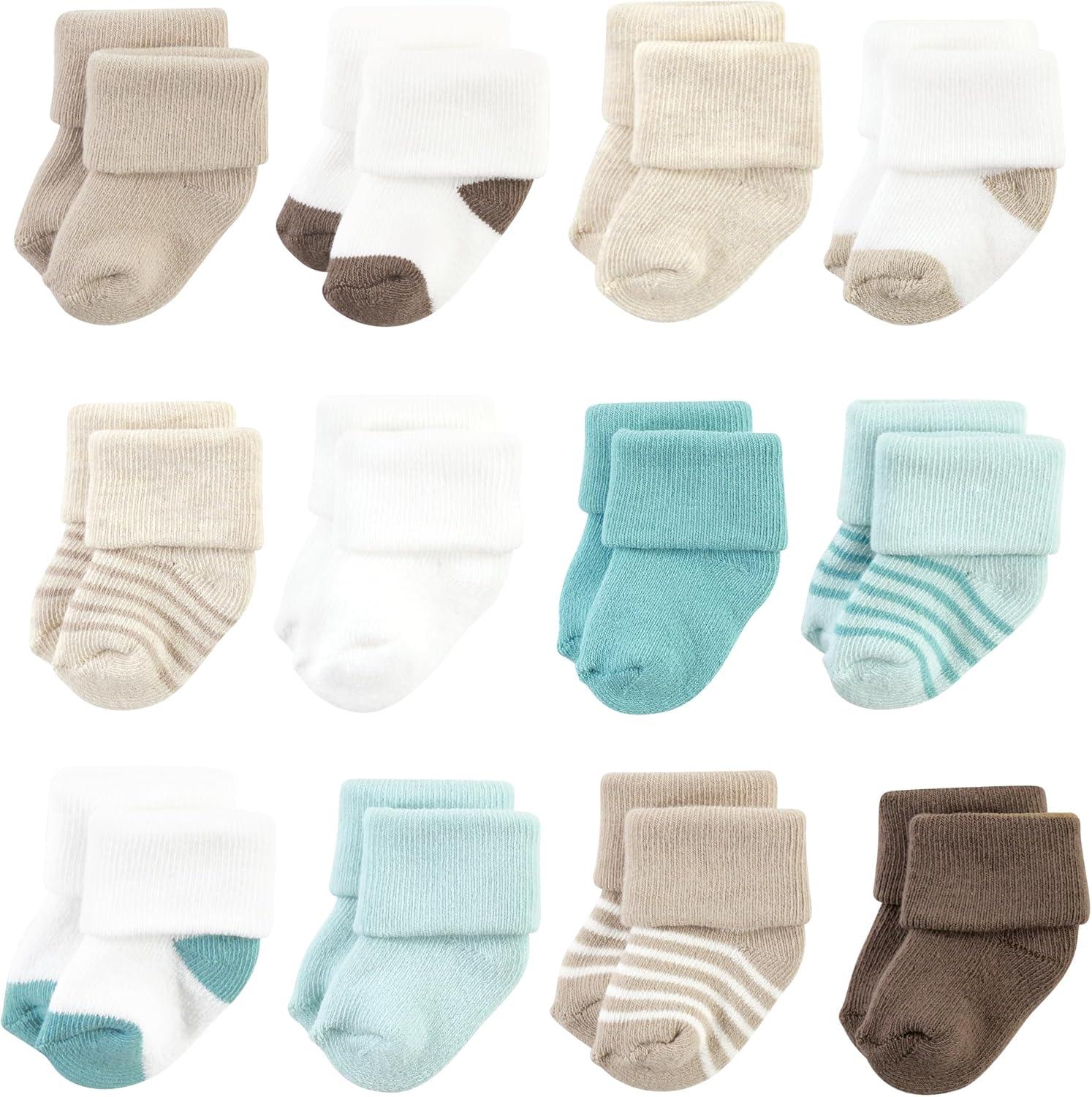 Hudson Baby Unisex Baby Cotton Rich Baby Terry Socks 24-Pack(Teal Brown Stripe)