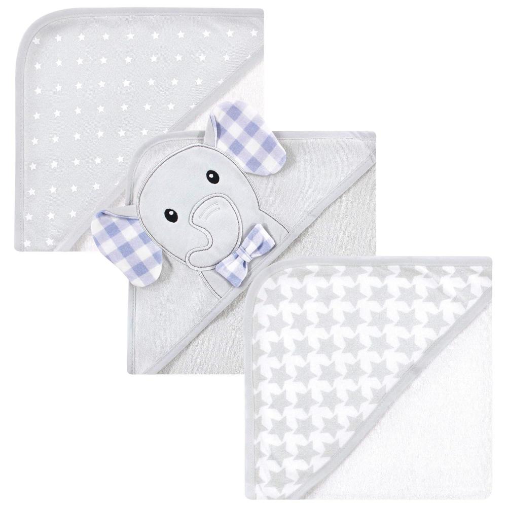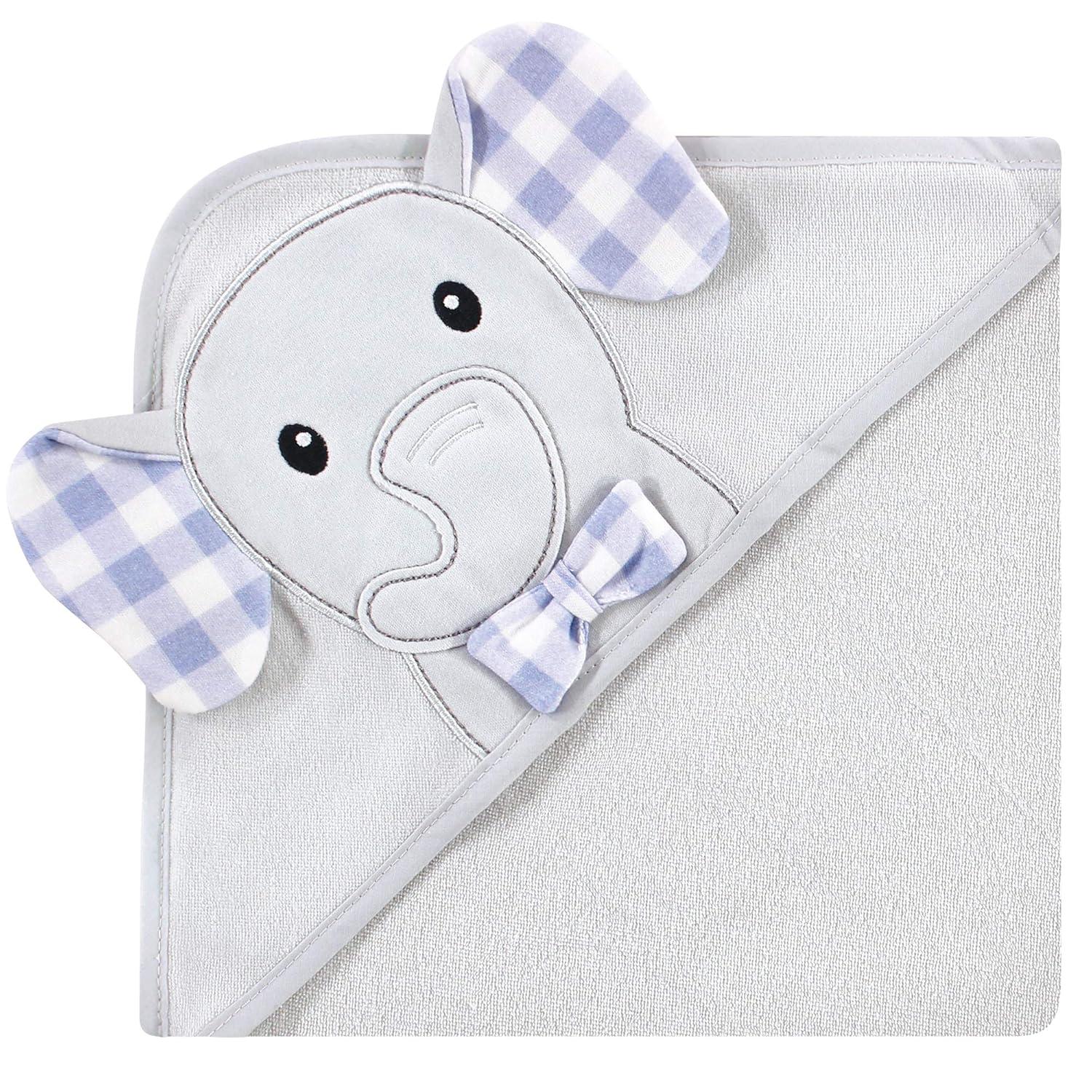 Hudson Baby Unisex Baby Cotton Rich Hooded Towels, Fawn, One Size(Gingham Elephant)
