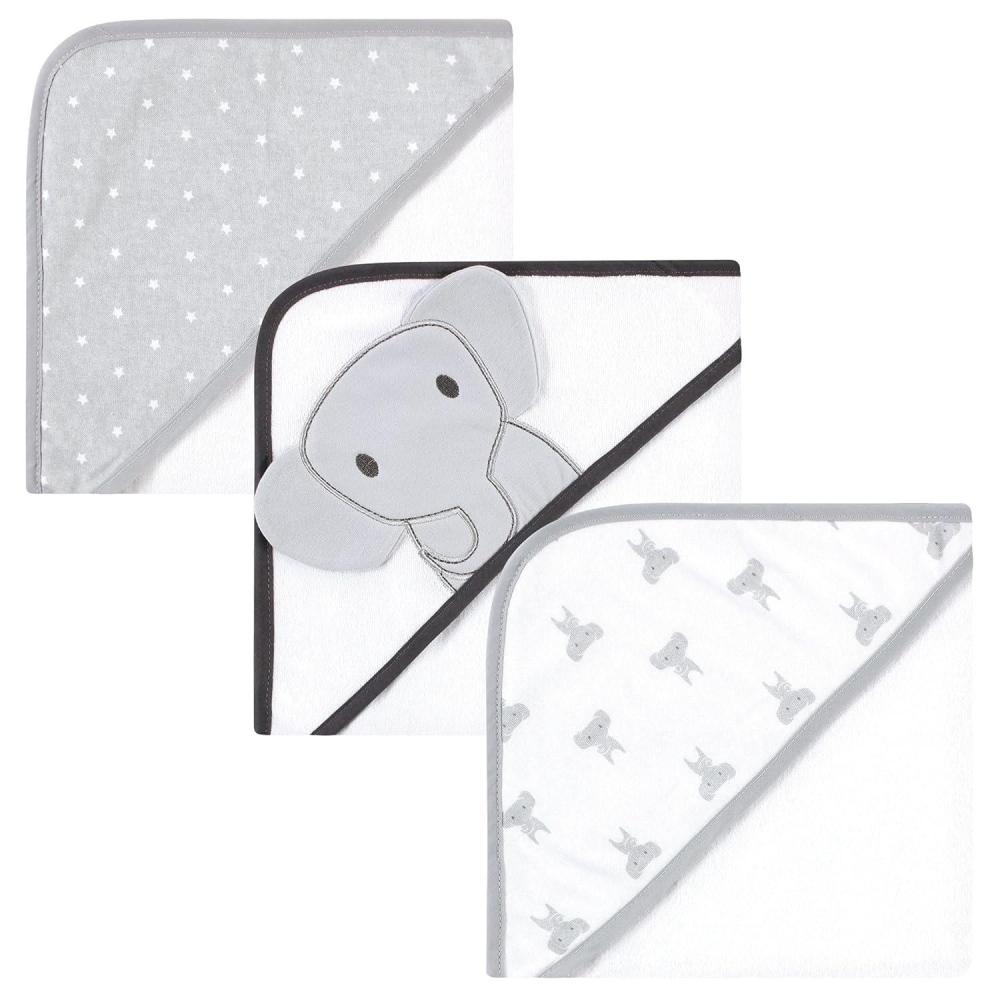 Hudson Baby Unisex Baby Cotton Rich Hooded Towels, Fawn, One Size(Gray Modern Elephant)