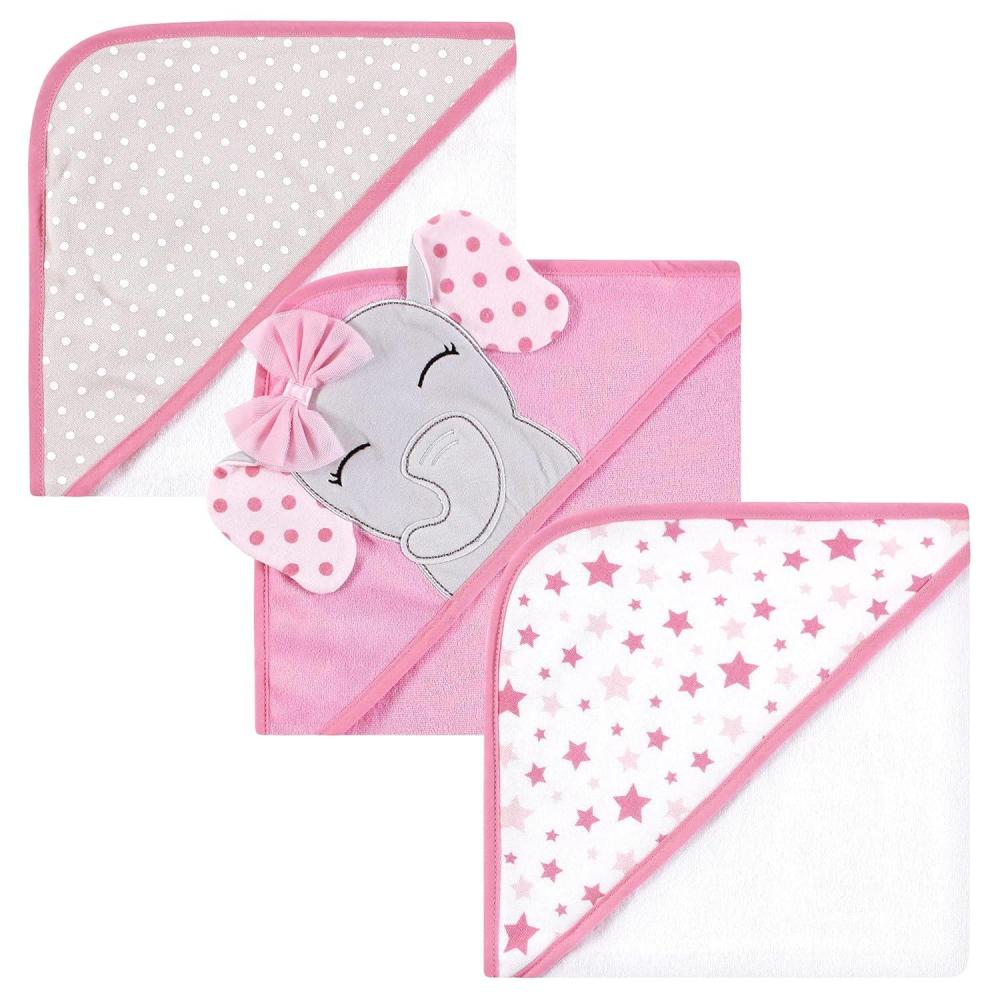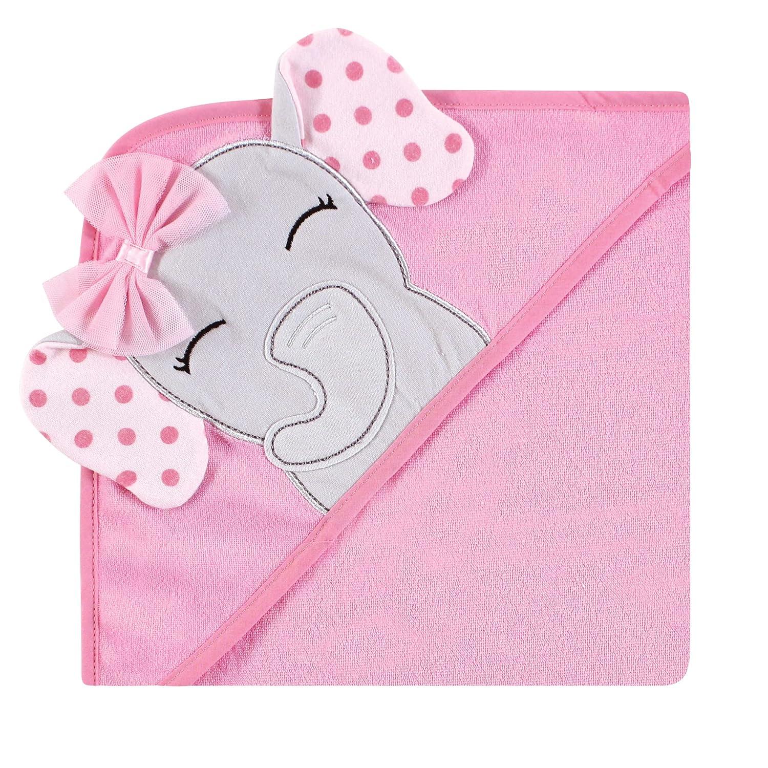 Hudson Baby Unisex Baby Cotton Rich Hooded Towels, Fawn, One Size(Pink Dots Pretty Elephant)