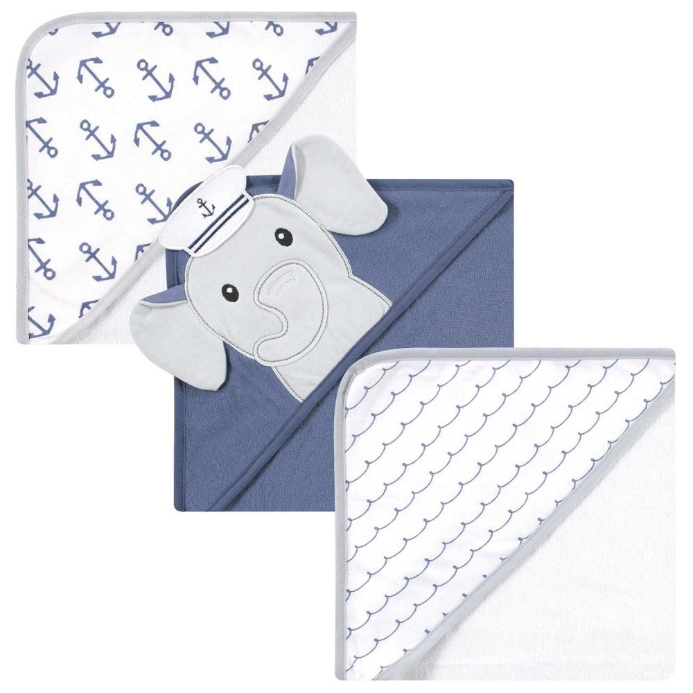 Hudson Baby Unisex Baby Cotton Rich Hooded Towels, Fawn, One Size(Sailor Elephant)